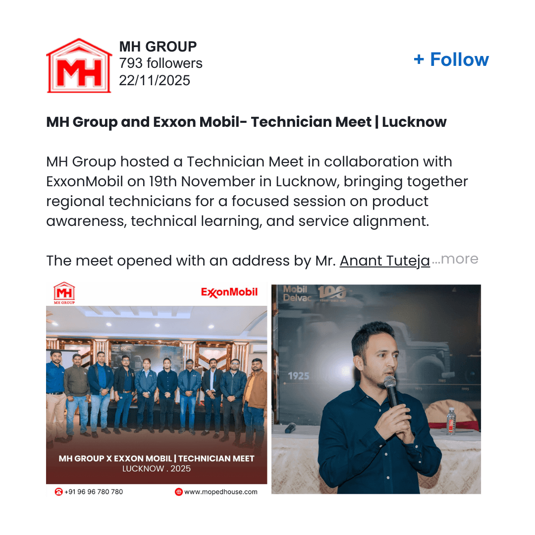 Established in 1980 by a visionary entrepreneur, our Founder and Managing Director, Mr. Chandra Kesh Tuteja, MH Group has become a trusted name in automotive components distribution space. With a legacy spanning over four decades, MH Group has consistently delivered exceptional services, solidifying its position as the leading two-wheeler spare parts distributor in Central and Eastern Uttar Pradesh. From its inception, MH Group has upheld an unwavering commitment to excellence. As the authorized distributor for over 56+ renowned brands, the company prioritizes quality, integrity, and customer satisfaction. Under the stewardship of our Founder, the organization has established a robust ecosystem that caters to diverse needs of automotive components retailers and automotive workshops.